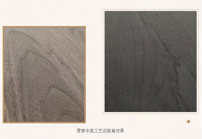 零度半透工藝效果,完美保留了木紋層次感和木紋自然感的凸顯,同時利用“特殊著色手法”對家具面做出若隱若現“猶抱琵琶半遮面”的視覺效果。