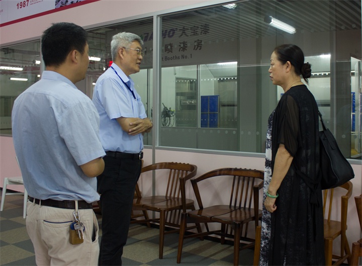 隨后,在陳春華總經理陪同下,孫蓮英會長分別對智能化涂裝測試線、色板中心、自動立體倉儲系統、技術部中央實驗室、后花園等進行了全面細致的參觀。大寶化工優美的廠區環境、先進的智能涂裝干燥設備、倉儲信息化管理、強大的科研設備人才隊伍、完善的管理制度等給孫會長留下了深刻的印象,孫會長在認真觀看的同時對東莞大寶企業實力不斷贊許,對大寶漆的品質充分肯定。并勉勵大寶,環保政策與日俱增,家具企業油改水轉型升級迫在眉睫,而水性涂裝和干燥成為了家具企業升級的大難點,大寶漆率先在行業內為家具企業轉型升級量身打造了一條水性智能涂裝干燥線,為行業推廣水性漆發揮了重要作用,成為了水性涂料推廣應用的先行者,中家協也在整合綠色家具產業鏈資源,此設備的投入運營必將為綠色家具提供重要樣板,大寶漆將繼續引領家具涂裝行業新前沿。