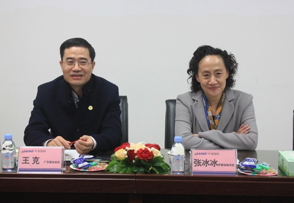 3月16日,中家協秘書長張冰冰、省家協會長王克、廣涂協會長黃開、順德家具開發研究院院長張建新及中外涂料網CEO李甫年等一行9人蒞臨東莞大寶化工參觀指導。大寶國際董事長陳賀生,東莞大寶化工總經理陳春華、副總經理張正賢等領導熱情接待了參訪人員,并就家具行業現狀及大寶水性木器漆發展情況召開座談會。