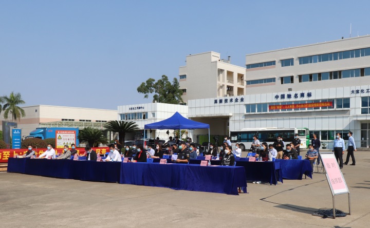 鎮指揮部在大寶化工成立現場指揮部,鎮人大主席吳美嬌,鎮委委員、公安分局局長楊方煜分別擔任現場指揮部總指揮和副總指揮,指揮現場各項處置工作。最后,在鎮疾控中心、衛健局等相關職能部門的共同努力及大寶化工的積極配合下,經“疫情發現、啟動預案、處置工作”等環節,本次應急演練順利完成。
