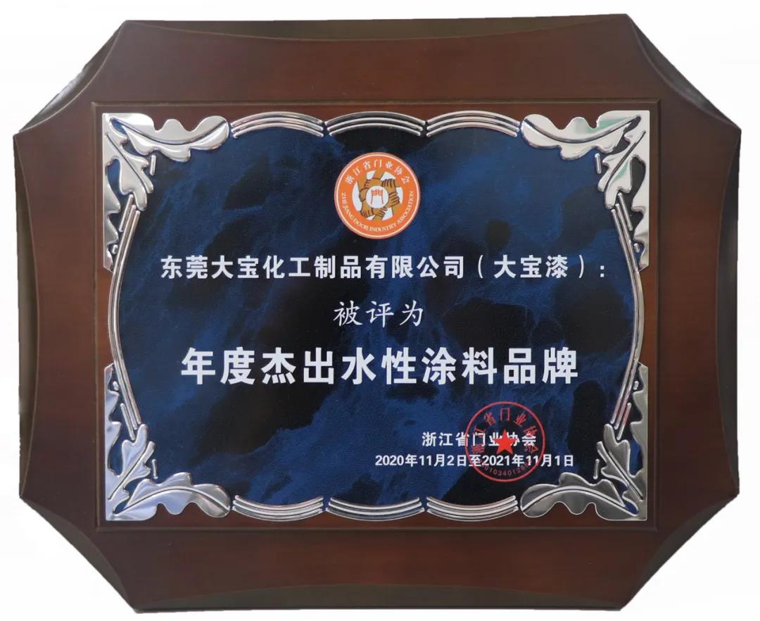 2020第七屆中國門業定制家居GDCC峰會暨浙江省門業協會年會,大寶漆獲得“年度杰出水性涂料品牌”。