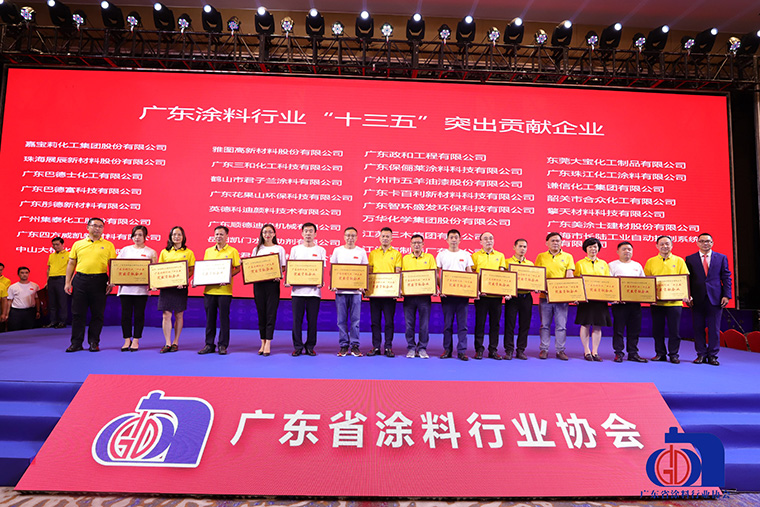 會上,廣東省涂料行業協會在《關于表彰廣東涂料行業“十三五”突出貢獻企業的決定》中指出,在“十三五”期間,在國家政策引領和全行業共同努力下,廣東省涂料行業涌現出一批勇于創新、深耕細分、精益管理的品牌企業,廣東涂料產業的快速發展,已成為全國涂料行業增長最快的區域之一。為進一步樹立行業優秀標桿,激勵行業創新發展,肯定發展成果,對大寶漆等主要經濟指標超過行業平均水平,并在品牌建設、科研成果、環保治理、智能制造等方面取得了重大突破,