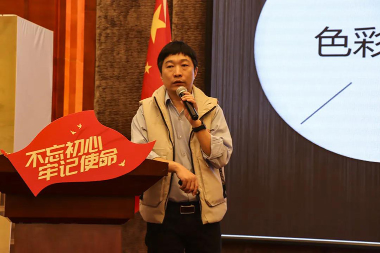 業(yè)三部執(zhí)行經(jīng)理張保中以“聚心而立,共力同行”為主題,全面詳細(xì)地闡述大寶裝?的秘密,色彩對人的影響及新色卡的問世,并首次向市場推廣4款大寶流行色。
