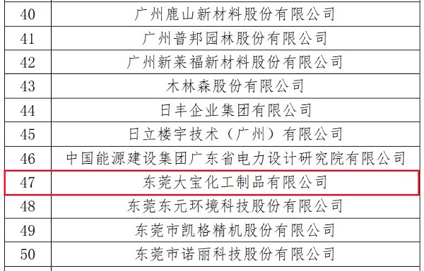 國家知識產權局公布2023年度國家知識產權優勢企業和示范企業評定結果,東莞大寶化工獲評“國家知識產權示范企業”。