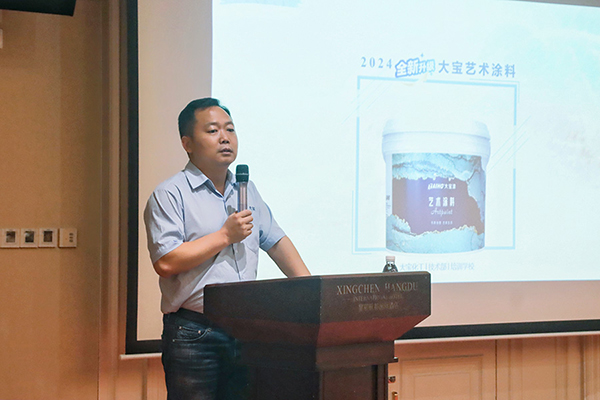 西南區(qū)王總監(jiān)詳細介紹大寶藝術涂料施工工藝及效果展示。通過生動的案例和詳細的演示,與會者對新品的性能和優(yōu)勢有了更深刻的認識。