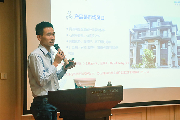 來自云南的龔向春分享了仿石漆市場推廣經(jīng)驗。他結(jié)合云南地區(qū)的實際情況,詳細介紹了仿石漆在市場推廣中的策略、方法和取得的成果,為與會嘉賓提供了寶貴的市場推廣經(jīng)驗和啟示。