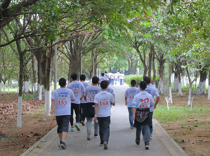 11月19日,由東莞大寶化工管理部組織的松山湖徒步大賽取得圓滿成功。本次大賽男子全程10公里、女子5公里,共36個小組近300人參加,各小組著統一隊服。“徒步走,健步行”是此次活動的主題。