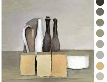 莫蘭迪色系源于意大利畫家喬治·莫蘭迪(作品見右圖),中國(guó)宋代以前的瓷器、繪畫作品也有很多相似色彩。莫蘭迪色具有低明度,低飽和度的特點(diǎn),摒棄了張揚(yáng)的色彩,融入適度灰色和白色作為調(diào)和,將原本濃郁艷麗的色彩轉(zhuǎn)化為優(yōu)雅高級(jí)的灰色質(zhì)感。莫蘭迪色因?yàn)椤堆屿麑m略》電視劇,成為一股勢(shì)不可擋的潮流,這系列色彩簡(jiǎn)單說(shuō)就是蒙著一層灰的低明度中性色調(diào),卻擁有久看不膩的質(zhì)感。