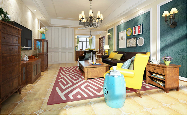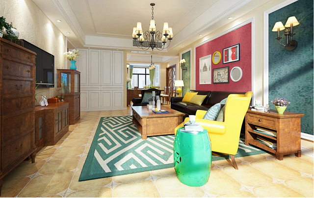 但對比色若過多視覺上會太眼花繚亂,只要抓住一個重點,在一個空間內(nèi)不超過三個以上的基本色,例如:墻面一個,地面一個,沙發(fā)或床單再一個顏色;或是墻面、地面三個顏色,其他軟件都用單一顏色搭配! 而且如果不怕失敗大膽一點下手,可以如案例圖中墻面運用紅色(暖色)及綠色(冷色)成為空間的主色,地面及其他軟件都盡量用同色搭配。